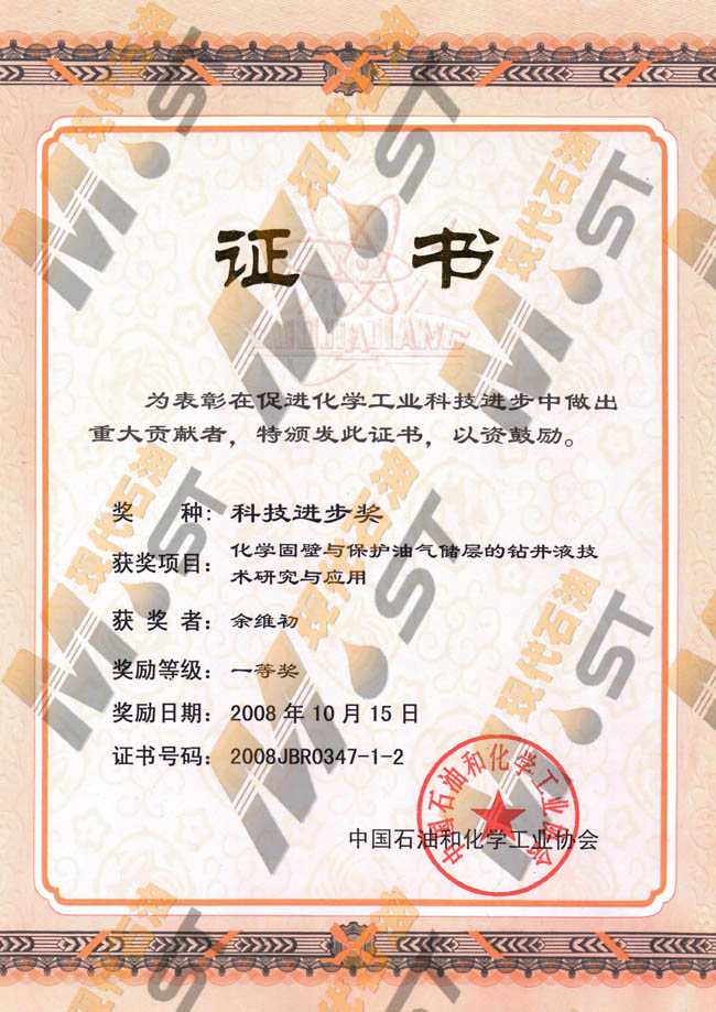 | 2008年榮獲中國(guó)石油和化工協(xié)會(huì)科技進(jìn)步獎(jiǎng)一等獎(jiǎng) |
